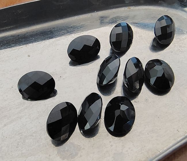 Listed is a selection of our Black Spinel gems cut in Checkerboard Oval Shape in a range of sizes.