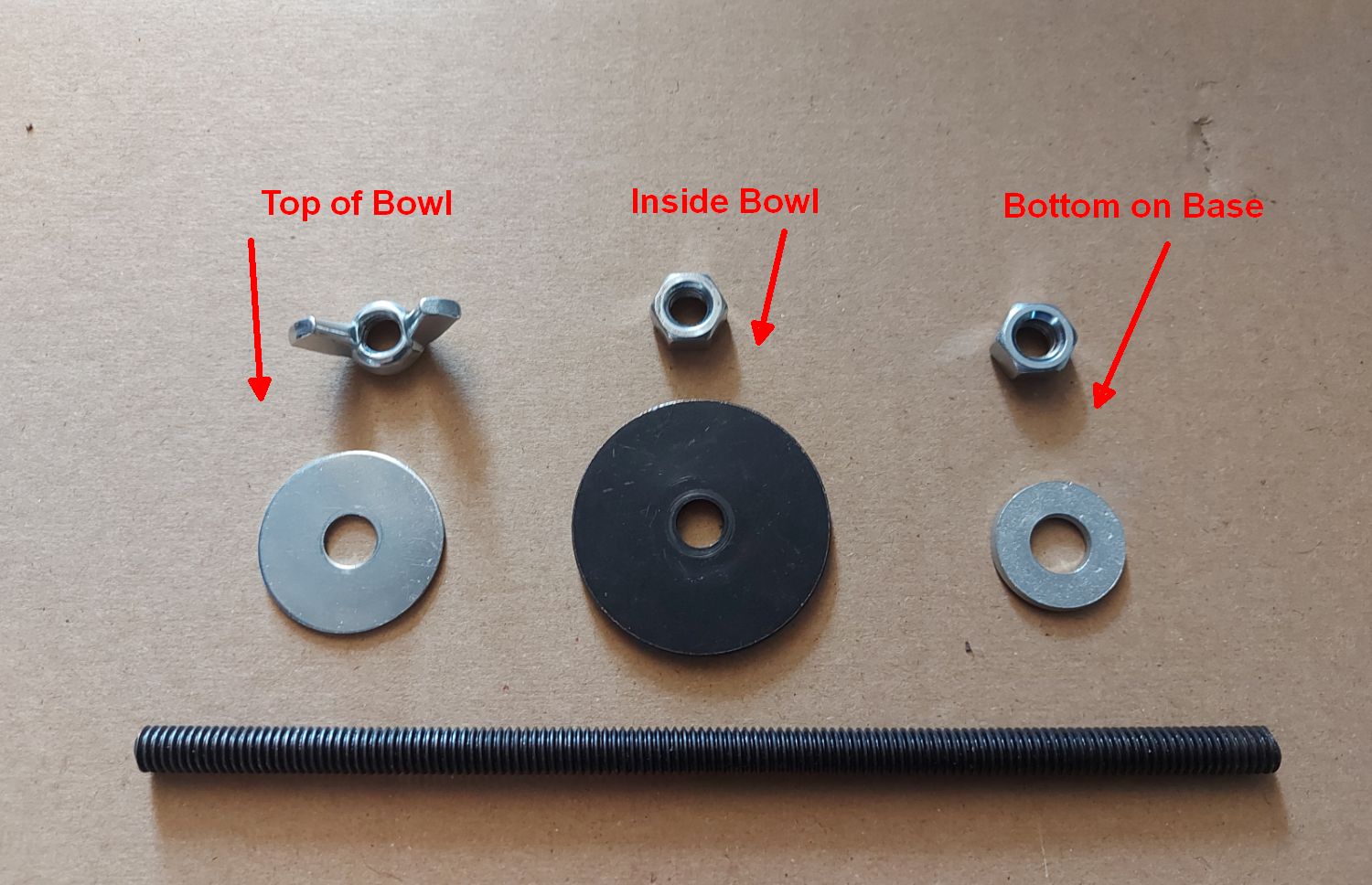 STEP 3:   Use the larger silver washer and wingnut to secure the bowl lid.  Do not over tighten.