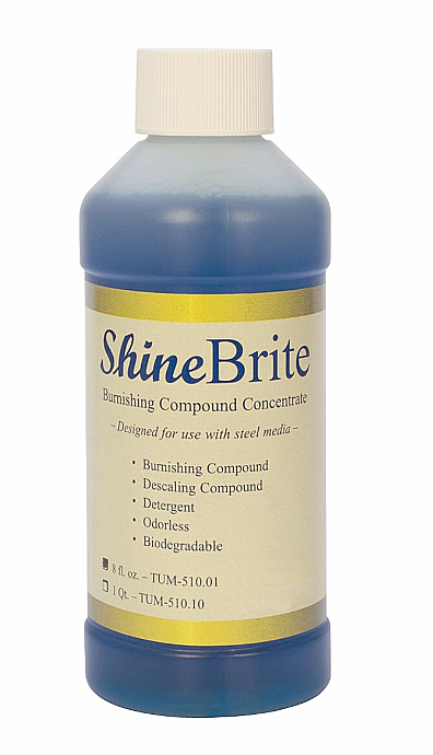 Shinebrite is odorless, biodegradable concentrate is designed for use with steel media.